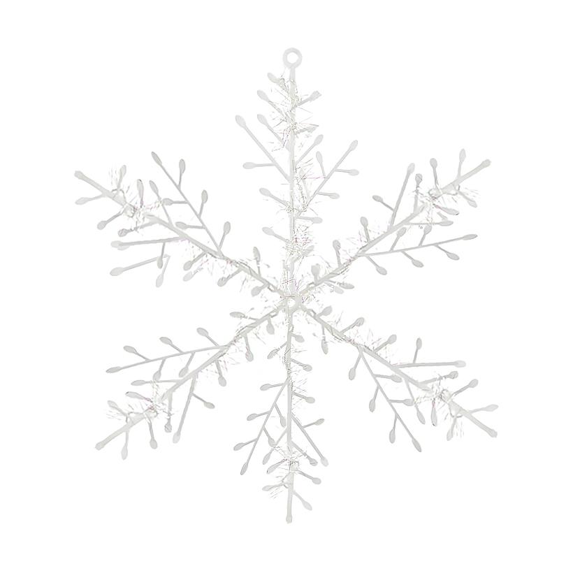 Підвісна прикраса у формі білої сніжинки. Декорована блискітками. Можна підвісити на ниточку або вплести в гірлянду. Розмір прикраси становить 15 см. Ціна вказана за 1 одиницю.