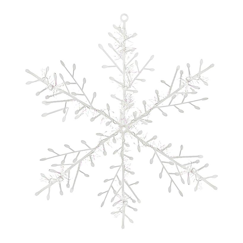 Підвісна прикраса у формі білої сніжинки розміром 18 см. Декорована блискітками. Можна підвісити на ниточку або використовувати в гірлянді. Ціна вказана за 1 упаковку.