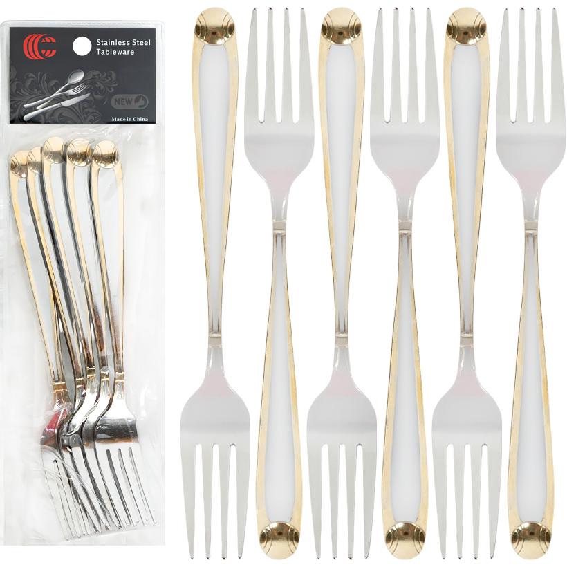Універсальний набір з 6 столових виделок довжиною 21см та товщиною 3мм , виготовлених з якісної нержавіючої сталі. Поверхня відполірована для захисту від корозії та легкого догляду. Ергономічна форма забезпечує зручність під час щоденного використання вдома, у кафе або для сервірування святкового столу. Упаковані у щільну упаковку, що підходить для зберігання та продажу. Практичний вибір для оптових закупівель і роздрібної торгівлі посудом.