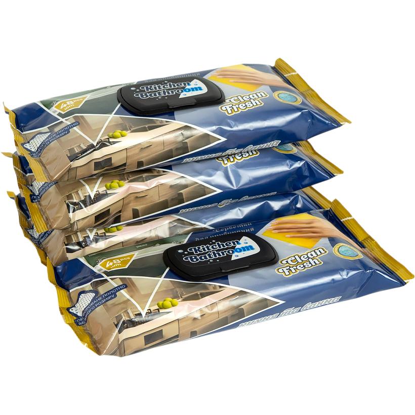 Вологі серветки для прибирання кухні та ванної 48шт клапан ТМ "CLEAN FRESH" 500830